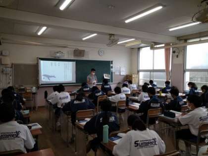 本日は、教育センターの指導委員の方に「学力向上支援」と題し、1年7組の国語の授業見学をしていただきました。通常は、来校をしていただき、ご助言をいただきますが、今回は、オンラインでの双方向の形態で実施されました。