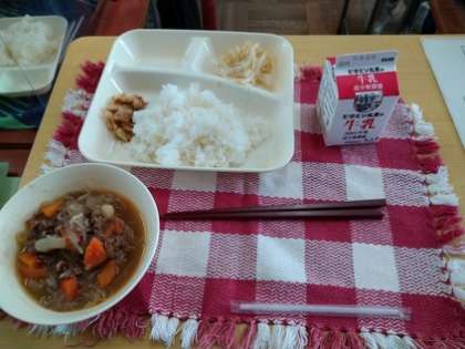 本日は、肉じゃが・もやしのゆずの香あえ・ごまかかいため・ごはん・牛乳でした。