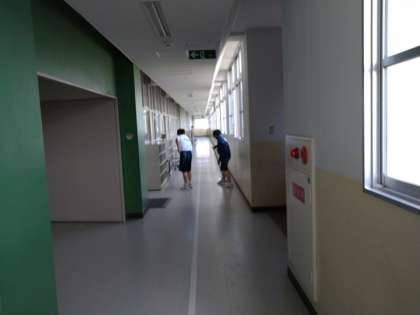放課後の専門委員会後、廊下の汚れをモップ掛けをしてくれている2名がいました。