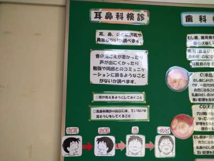 今回は、耳鼻科検診・歯科検診・眼科検診を終えて、多くの情報が掲示されていました。