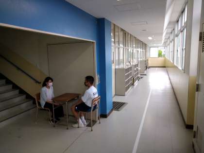 今月6月は「教育相談月間」として、担任の先生と生徒の皆さんで1対1の教育相談を行っています。6限目、1年生は「教育相談」を行っていました。担任の先生方が、しっかりと皆さんの話に耳を傾け、対応をしています。