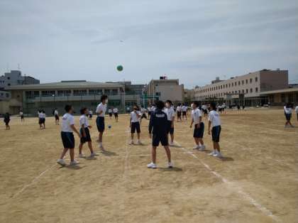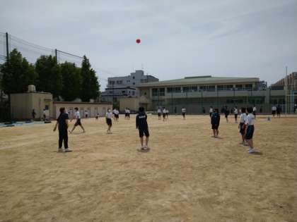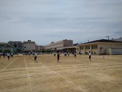 給食を終えると、グラウンドではボール遊びに夢中になる菫中学生で賑わっていました。