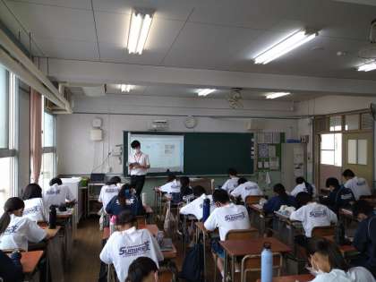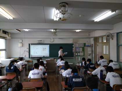 本日の1限目、2年5組で教育実習生の公開授業が行われています。