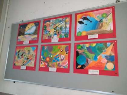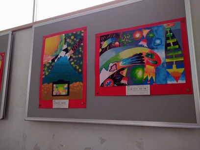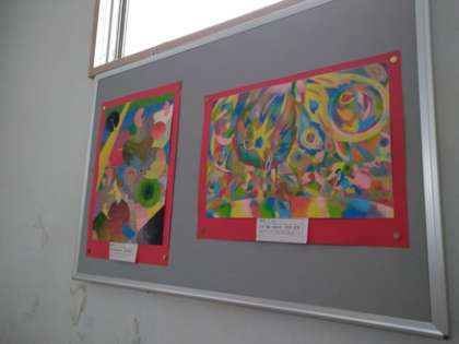 2年生のフロアーの所に、芸術的な2年生の美術作品が展示されています。