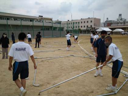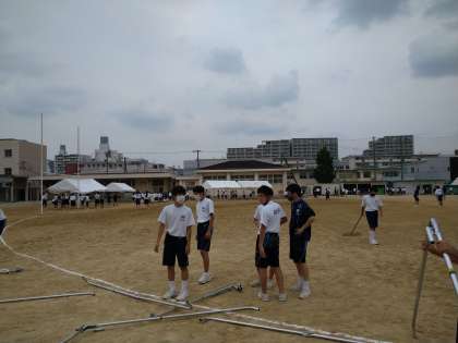 放課後は、委員長、図書委員、書紀、男子保健、女子体育委員、風紀委員に集まっていただき、テント張りを行いました。3学年ともに一所懸命に動いてくれました。
