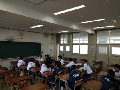 写真は、3年生委員長会です。各学級で「現在の学級の状況」の話し合いを行いました。