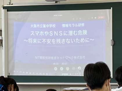 全学年を対象に、NIT情報技術推進ネットワーク株式会社 大阪府教育委員会ネット対応アドバイザーの嶋田亜紀先生に来校していただき