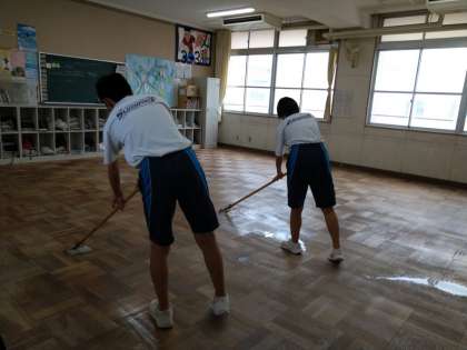 本館は、ワックスがけを行いました。普段通りの清掃をして埃を取り、その後に雑巾がけをしました。大変な仕事を一所懸命に進んで行ってくれました。