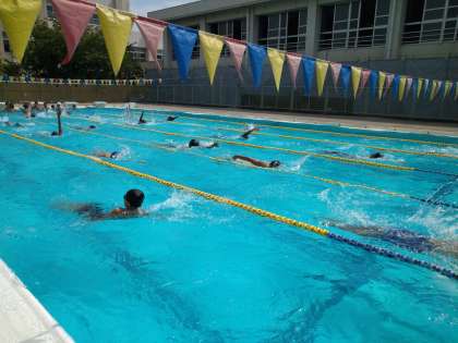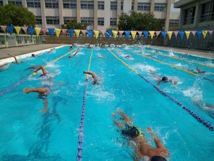 水泳部も来週の大会に向けて、練習に取り組んでいます。先生のメニューを、先輩の指示のもと、練習が始まりました。