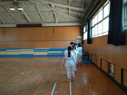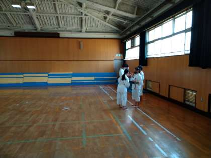 格技室では、少林寺拳法部が暑さに負けず、練習に励んでいます。