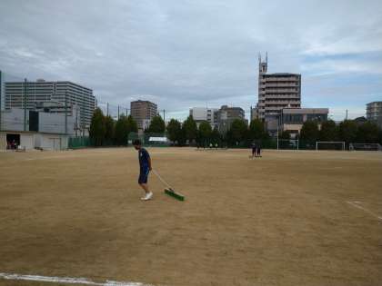 明日の朝のグラウンドを使用する部活動のために、自分たちが使用した後、丁寧に整地をしてくれました。ありがとうございます。