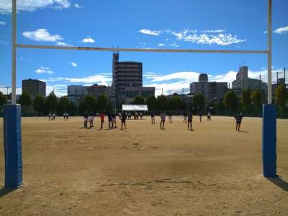 暑さに負けず、ラグビー部が他校と合同練習を行っております。