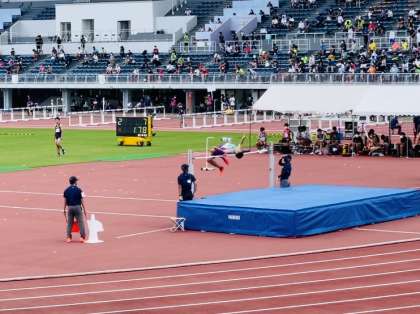 種目は走り高跳びです。いい天気の中、競技を行いました。