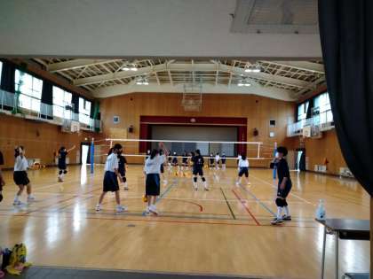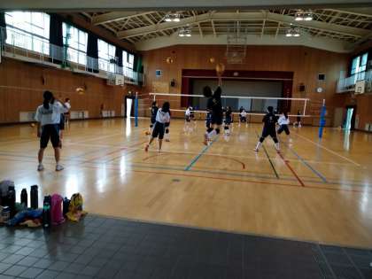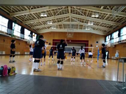 バレーボール部が体育館で、一所懸命に取り組んでいます。