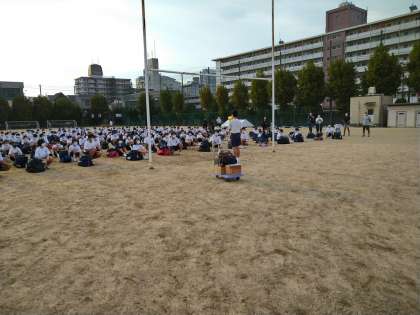 感染対策として、グラウンドで出発式を終え、花博通より6時55分に出発しました。