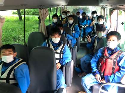 朝イチは、ラフティングです!着替えをして、移動中です。