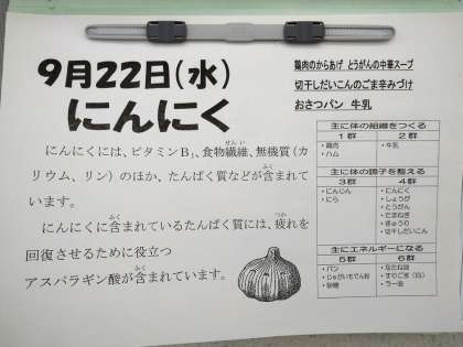 今回は、「にんにく」が含まれたメニューでした。