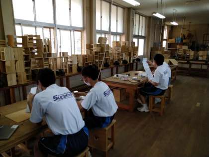 工作室では、理科部が「ロボコン」に向けて、取り組んでいます。