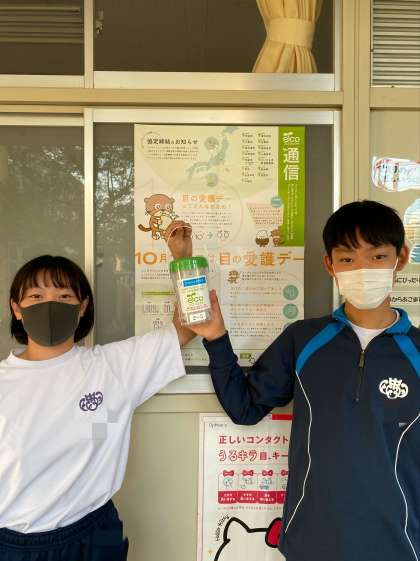 1年2組、1年5組、1年6組、2年5組の保健委員さんが、満杯になった回収ボトルを持ってきてくれました!