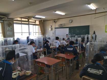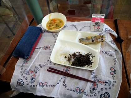 本日は、さんまのみぞれかけ、みそ汁、牛ひじきそぼろ、ごはん、牛乳でした。