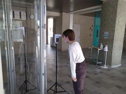 明日の10月18日(月)から、正門に4台のスタンド式非接触温度計を設置いたします。