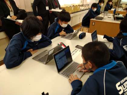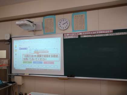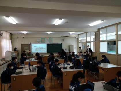 間もなく、公開授業が始まります。生徒のみなさんは、すぐに教室で待機し、一人一台端末の準備を始めています。
