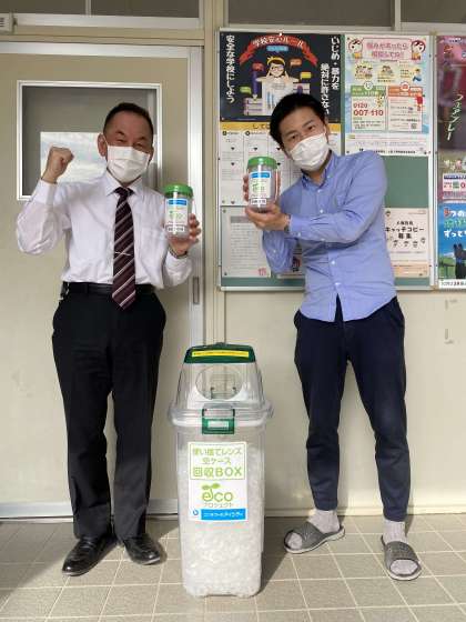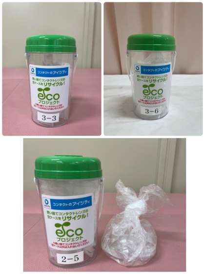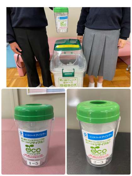 今週は、1年5組、2年1組、2年3組、2年5組、3年3組、3年5組の保健委員さんが、コンタクトレンズの空ケースを持ってきてくれました。