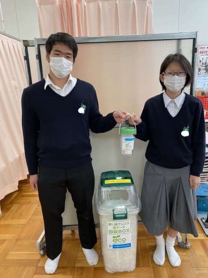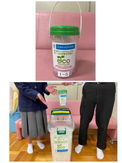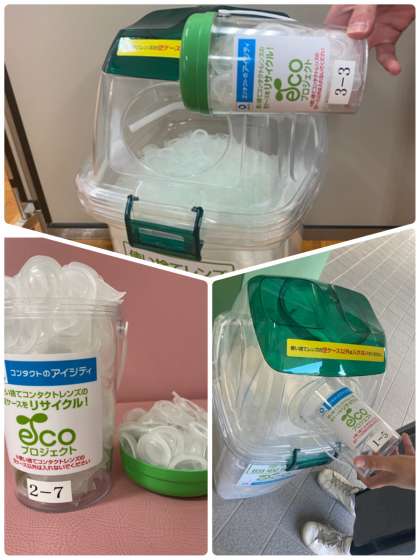 今週は、1年5組、2年7組、3年1組、3年3組、3年5組の保健委員さんが、コンタクトレンズの空ケースを持ってきてくれました。1年5組は、今週2回集まりました!