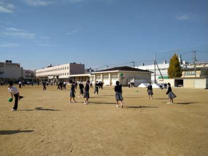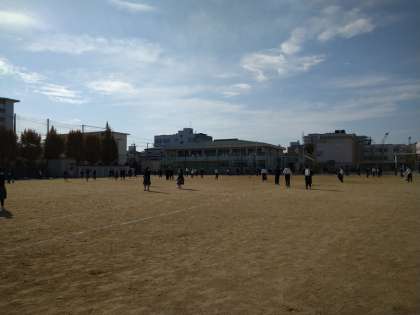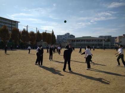 昼休みには、多くの人がグラウンドで元気よく遊んでいます。