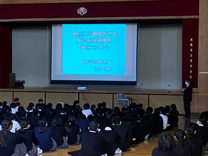 乳歯から生えかわったばかりの永久歯はもろい為、毎日の丁寧な歯みがきや、良い食習慣が大事であること、唾液の働きと歯の関係、CO(要観察歯)は良い生活習慣を続けることで、元の健康な歯に戻すことができる等、様々なことを教えていただきました。最後には、1年生からの質問にも沢山答えていただきました。
