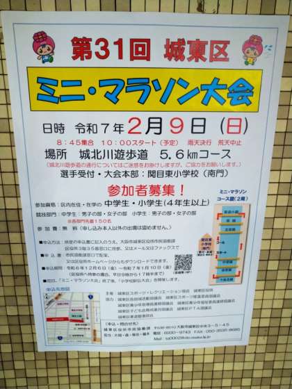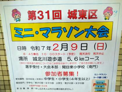 城東区スポーツ・レクリエーション協会様と城東区役所様主催の城東区ミニ・マラソン大会が、令和7年2月9日(日)に開催されます。
