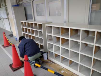 新年明けてからも、管理作業員の方々が、年末から取り掛かっていただいているロッカーの塗装をしてくださっています。
