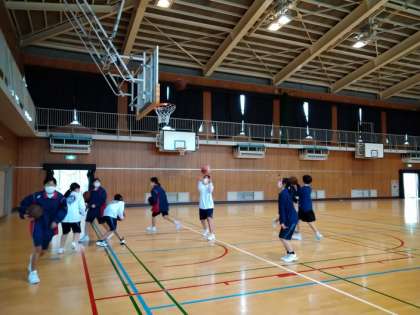 バスケットボール部が、シュート練習に励んでいました。みんな明るく元気いっぱいです。大会に向けて、がんばってください!