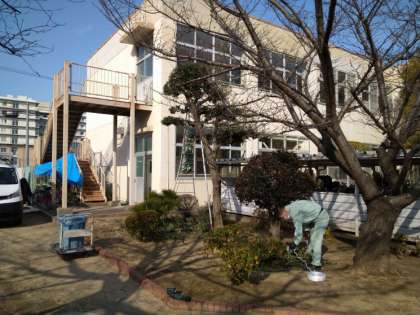 1月末から2月初旬にかけて、管理作業員の方々を中心に、大規模の植木の伐採と剪定を行ってくださいました。中庭、グラウンドの木々スッキリとした感じに仕上がりました。害虫の駆除等も行っていただきました。みなさんが安心・安全な学校生活を送れるよう、木々も整えてくださいました。