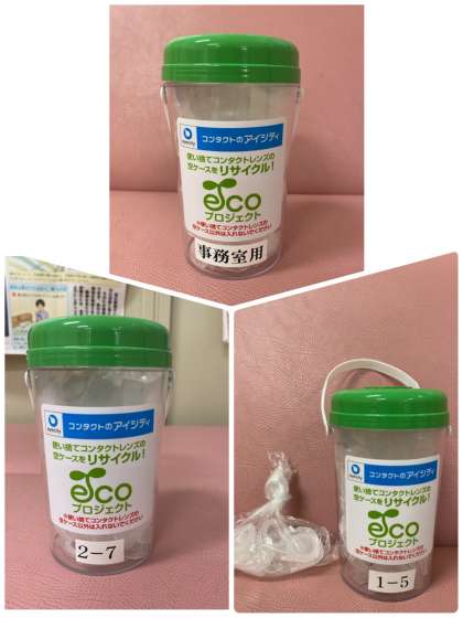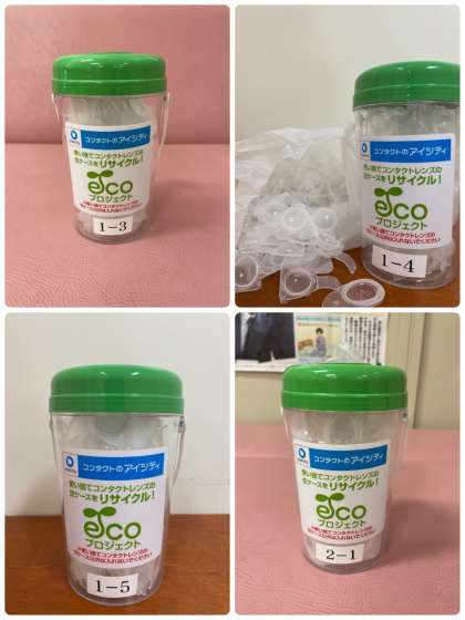 今回は、1年3組、1年4組、1年5組(2回!)、2年1組、2年7組の保健委員さんが、コンタクトレンズの空きケースを持ってきてくれました。また、事務室からもご提供いただきました。