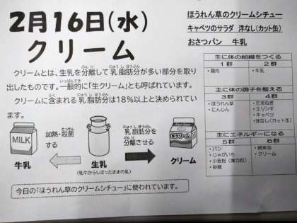 クリームに含まれる乳脂肪分は、18%以上と決められています。今日の「ほうれん草のクリームシチュー」に使われています。