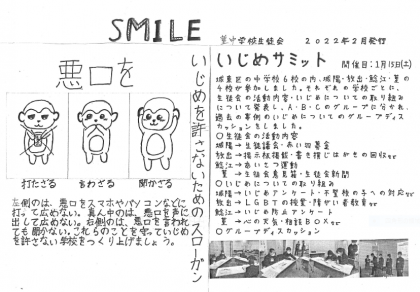 1月15日(土)に開催されたいじめサミットについての内容でした。がんばっています、生徒会!