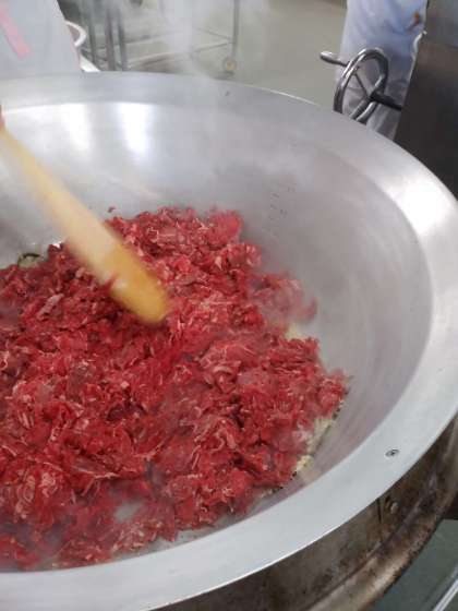 牛肉のデミグラスソース煮は、ワインで下味をつけた牛肉、玉ねぎを炒めた後、りんごピューレやデミグラスソース等で味付けをした洋風の煮物です。もっと欲しかった!という声があがりました。