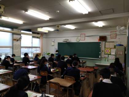 昨日の球技大会の振り返りと学年末のまとめを行いました。とても真剣に自身と向き合っていました。