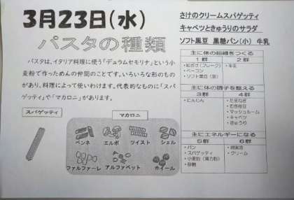本日が、今年度最後の給食となりました。いつも温かく美味しい食事を提供していただきまして、ありがとうございました。引き続き、来年度もどうぞよろしくお願いいたします。