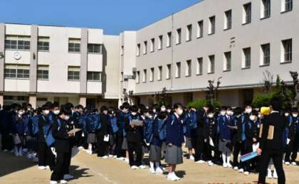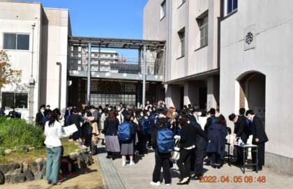本日は、晴天のもと、入学式が行われました。受付では、クラス発表が行われ、素敵な表情がたくさん見られました。これから、体育館へ入場します!