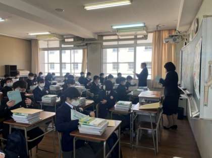 入学式後、各学級で中学校初の学級活動を行いました。きちんといい姿勢で話を聞くことができていました。