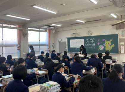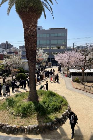 学級活動後は、中庭で記念し撮影が行われていました。とてもきれいな桜のもと、いい笑顔が弾けておりました!76期生のみなさん、ご入学おめでとうございます。保護者の皆様、3年間よろしくお願いいたします。