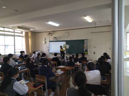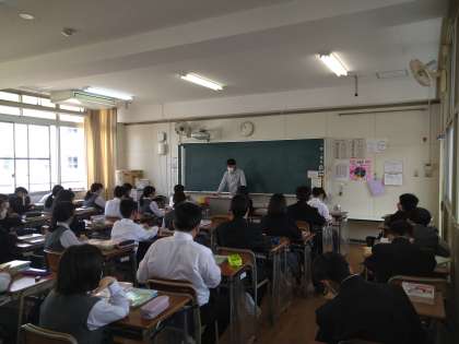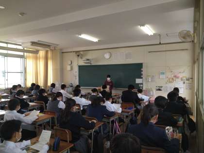 3限目の1年生の授業風景です。先生の話をしっかりと聞けていました。