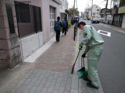 本日は、5限目の通常授業でした。朝の登校時に、管理作業員の方々が学校周辺の清掃をしてくださっています。いつもありがとうございます。