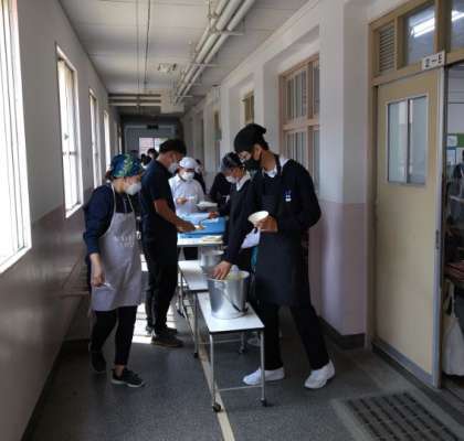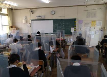 黙食を徹底して食事をしております。2年生の給食風景です。