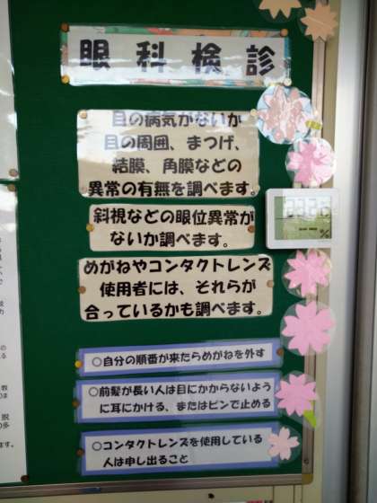 明日、20日は眼科検診が行われます。対象は、3年生全クラスと2年1〜4組です。