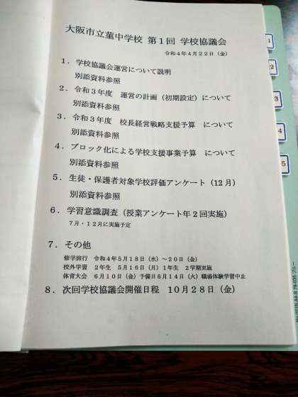 学校長より、学校協議会運営や令和年度の運営に関する計画(初期設定)、学校評価アンケート調査結果等々の?明が詳細になされました。