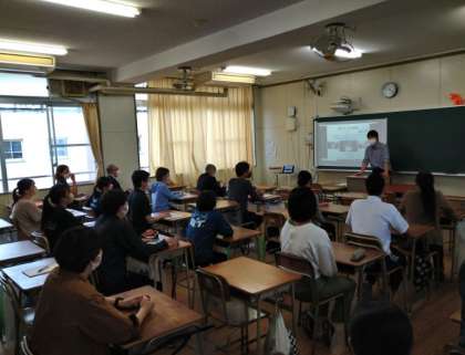 講話の中で、「良い教師は、わかりやすい説明をする」、「優秀な教師は、自らやってみる」、「最高の教師は、子どもの心に火をつける」というお話がありました。参加された先生方は、講師の指導教諭の話にしっかりと耳を傾けていました。参加者みなさんの、とても意欲的な姿勢が印象的でした。