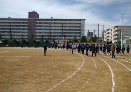 まずは、1・2限目に3年生の体育大会の学年練習が行われました。